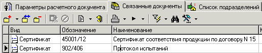 На закладке «Связанные документы» ведется список документов системы документооборота, связанных с текущим расчетным документом.