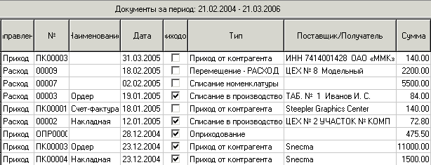 Учетные документы (см.п.10.2) представляют собой документы движения по каждому складу (цеху, участку) которые могут выписываться на основании расчетных документов, и связаны с картотеками складов. Информация, содержащаяся в оприходованных учетных документах, определяет движение ТМЦ (обороты) и остатки в картотеках системы.