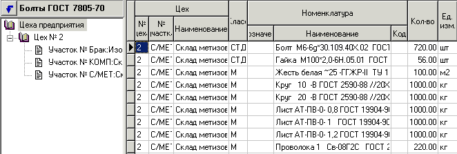 Нажатие кнопки «Остатки по цехам» позволяет вывести