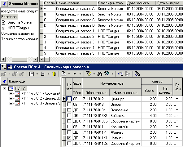 Состав заказа определяется включенными в него производственными спецификациями (ПСп).