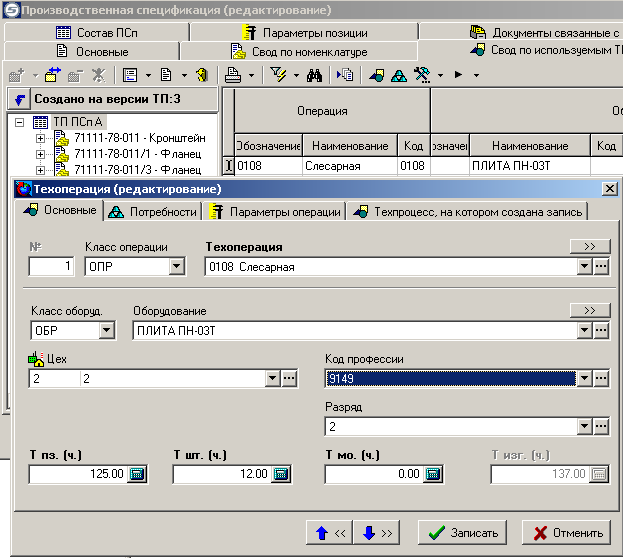 При формировании коллекции (перечня) технологических процессов, указываются конкретные варианты технологических процессов, по которым будут изготавливаться изделия. Они берутся из разработанных и пронормированных технологий для номенклатурных позиций, изготавливаемых в данном заказе. Поэтому в рамках данной коллекции можно определить как трудовые нормативы, так и ресурсы (материалы, инструмент и т.д.), необходимые для выполнения заказа.