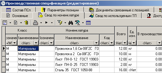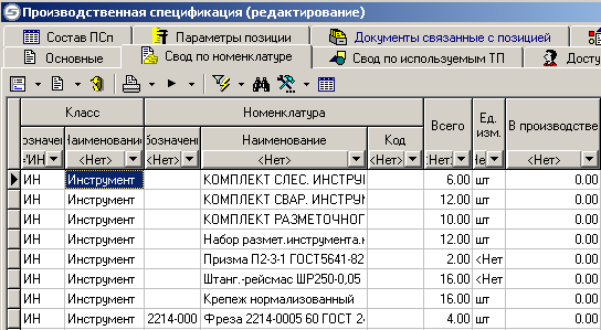 В своде по номенклатуре определяются материалы и инструменты, необходимые для выполнения заказа.