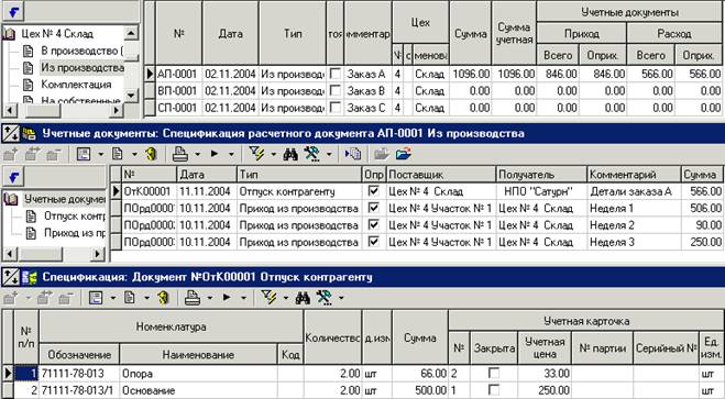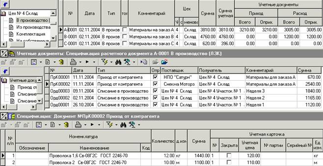 После того, как в системе подготовлены расчетные (плановые) документы, возможно дальнейшее отслеживание приходов и расходов по этим документам, которые оформляются с помощью учетных документов, определяющих движение по картотекам складской системы.