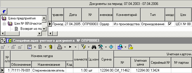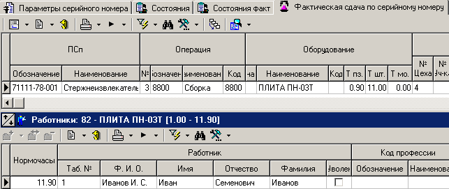 · Информацию о фактической сдаче экземпляра данной номенклатурной позиции из производства (цех, участок, операция, оборудование и т.д.), в том числе и параметры, полученные при изготовлении данного серийного номера,