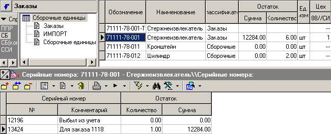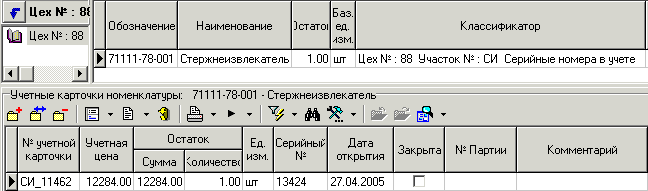 · Информацию об учетных документах, связанных с данным серийным номером (т.е. когда и кому передавался или возвращался на предприятие-изготовитель для обслуживания и ремонта).
