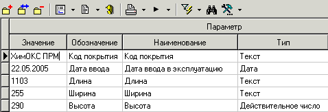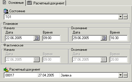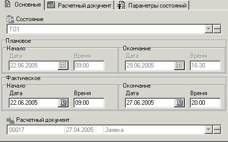 Наименования состояний выбираются из единого справочника системы «Состояния оборудования» (см.2.1.8). Каждому состоянию, помимо списка параметров можно назначить расчетный документ подсистемы складского учета, в котором будут отражаться как запланированные, так и потраченные на текущее обслуживание и ремонт материалы и комплектующие.