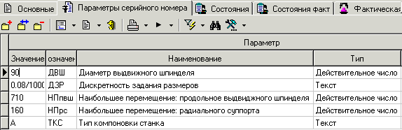 ведется перечень параметров конкретного экземпляра (серийного номера) станка.