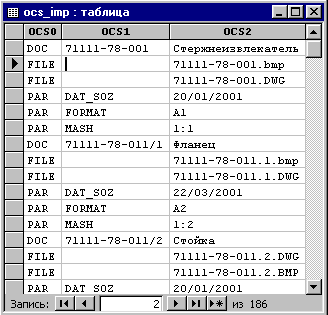 В файле импорта содержатся поля: OCS0 длиной 10 символов, OCS1 длиной 50 символов и OCS2 длиной 150 символов. Фрагмент файла импорта приведен на следующем рисунке: