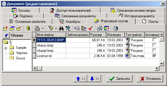 Работа с файловым составом документа ведется на закладке «Файловый состав» карточки документа.
