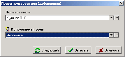В выпадающем списке «Пользователь» выбирается пользователь, которому назначается доступ к документу, а в списке «Исполняемая роль» задается роль и соответственно шаблон прав доступа к документу.
