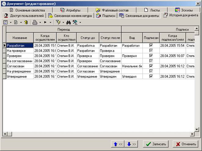 документа», куда заносится информация об изменении статуса каждой