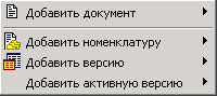 Пункт меню «Добавить активную версию» полностью идентичен предыдущему, за исключением того, что после выбора номенклатуры не производится запрос на выбор версии, а связь осуществляется автоматически с активной на данный момент версией.
