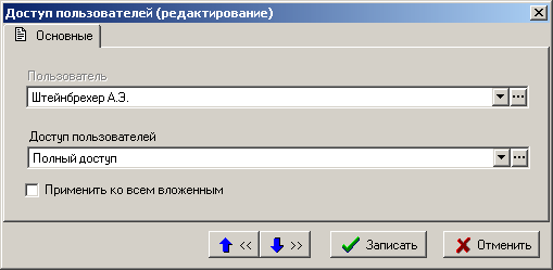 Для того чтобы вид доступа данного пользователя распространялся на подэтапы текущего этапа проекта нужно установить флаг «Применить ко всем вложенным».