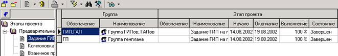 Этот режим служит для отображения этапов проекта в разрезе групп.