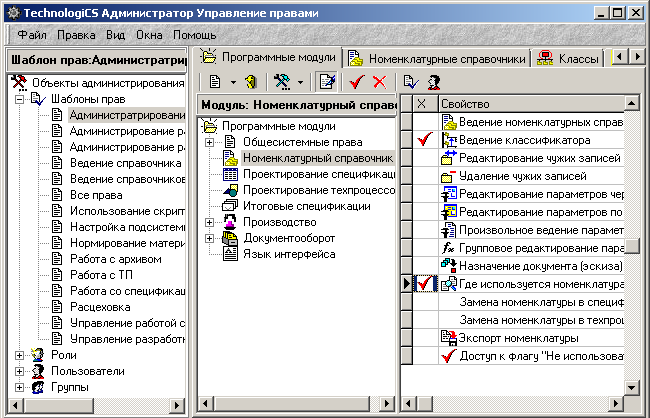Назначение прав на доступ к программным модулям производится на закладке «Программные модули».