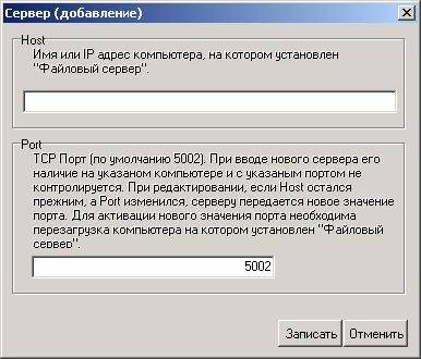 В поле «Port» вводится номер порта файлового сервера. Это идентификационный номер процесса на компьютере, на котором установлен «Файловый сервер».