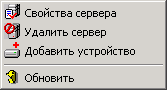 Установив курсор мыши в дереве на введенный сервер, в контекстном меню становятся доступными следующие команды:
