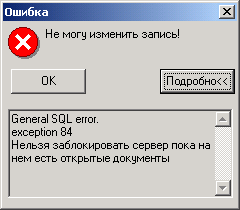 Если же операция блокирования невозможна, то выдается сообщение вида:
