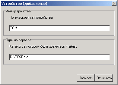 В поле «Логическое имя устройства» вводится имя устройства (произвольное наименование, поясняющее путь на сервере).