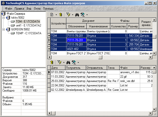 Для переноса информации (файлов) между файловыми серверами необходимо выделить в правом верхнем углу необходимые файлы или документы или отдельные версии и просто перенести их методом «drag and drop» на нужный. Для этого следует одновременно нажать клавиши Shift и Ctrl.