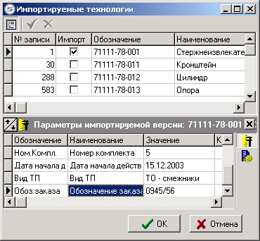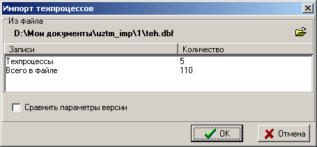 где в нижней части экрана выводится перечень и значения параметров импортируемой версии ТП.