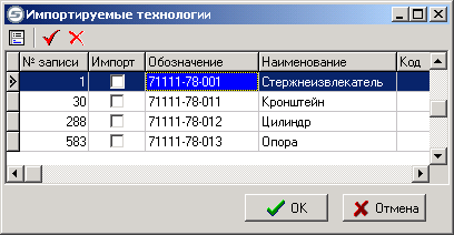 В столбце «Импорт» нужно отметить те позиции, для которых следует перезаписать версии ТП. Этот флаг ставится автоматически при соблюдении следующих условий.