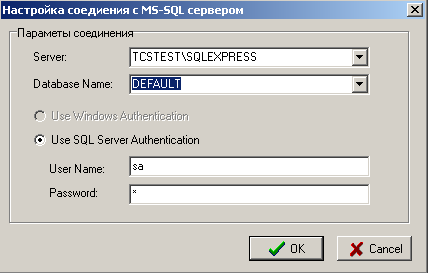 к базе» = «Server_Name:Base_Name», где Base_Name - имя базы данных TechnologiCS,