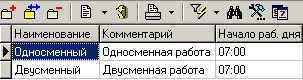 и содержит перечень календарей принятых на предприятии. Количество календарей не ограничено, для каждого календаря заносится наименование, комментарий и время начала рабочего дня.