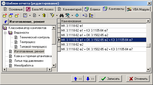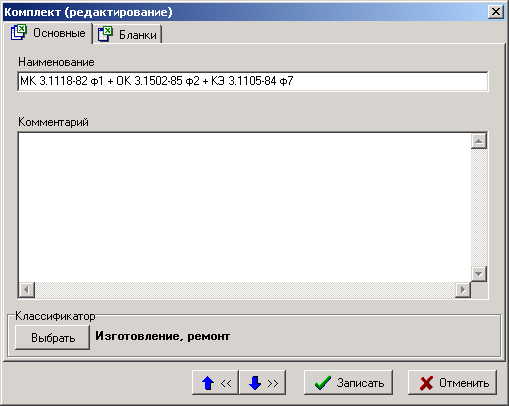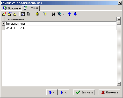 В список заносятся те бланки документов, из которых должен состоять текущий комплект. Каждый бланк предназначен для формирования документа одного вида.