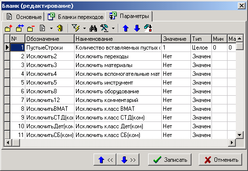 Список параметров можно корректировать и дополнять. Данный список параметров текущего бланка документа будет использоваться только для текущего комплекта.