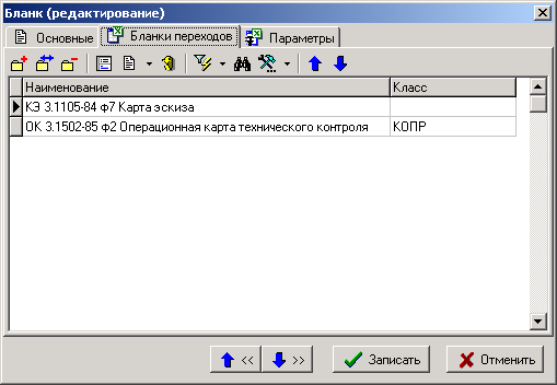 В том случае если при формировании текущего документа данные по определенному классу нужно отобразить при помощи другого бланка, то такой бланк указывается в списке на закладке «Бланки переходов».