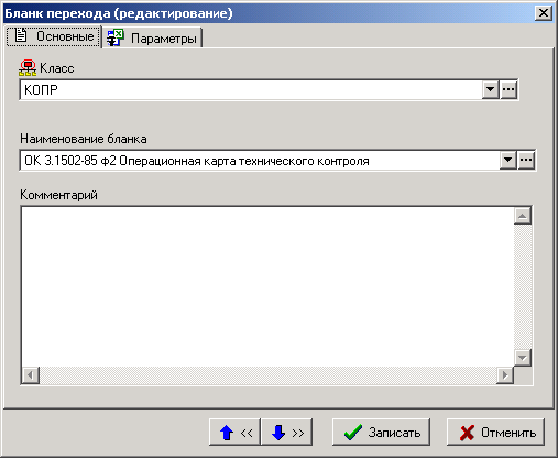 Также как и для основных бланков комплекта, для бланков переходов реквизит «Комментарий» и список параметров заполняются автоматически из соответствующих реквизитов выбранного бланка.