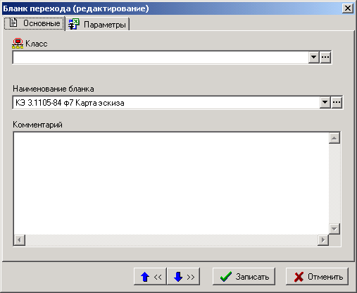 Если для этой записи поле «Класс» оставить пустым, то все карты эскиза будут формироваться на этом бланке. Если в поле указать обозначение класса, то на данном бланке будут формироваться карты эскиза только для операций с таким обозначением класса.