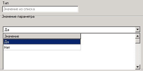 Значение параметра с типом «Значение из списка» выбирается из выпадающего списка.