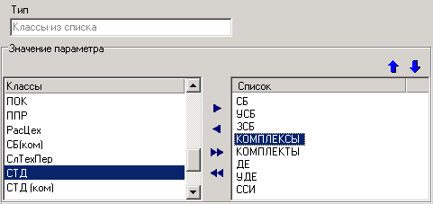 · Классы из списка – несколько значений из списка классов, имеющихся в системе