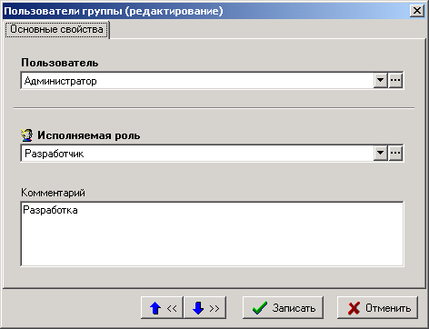 В поле «Пользователь» выбирается пользователь, который включается в рабочую группу, в поле «Исполняемая роль» пользователю назначается роль, которую он будет исполнять в рамках рабочей групп, в поле «Комментарий» - любая поясняющая информация.