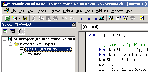 Лист книги MS Excel бланка может иметь процедуру Implement.