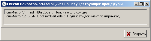 реквизите «Имя макроса», выводится окно с соответствующим сообщением.