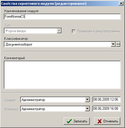 В реквизит «Комментарий» записывается комментарий к модулю формы.