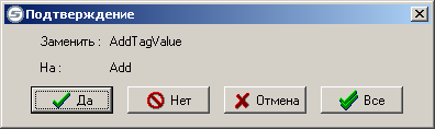 Для замены найденной последовательности символов следует нажать кнопку «Да», будет произведена ее замена и поиск будет продолжен дальше.