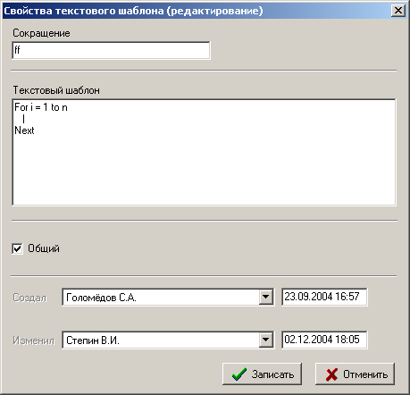 Флаг «Общий» устанавливается для того, чтобы другие пользователи системы могли пользоваться данным текстовым шаблоном.