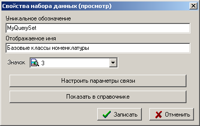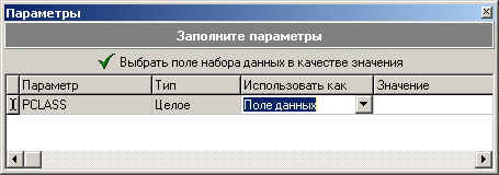 Также можно настроить параметры связи набора данных с текущим окном TechnologiCS (кнопка «Настроить параметры связи»), т. е. задать значение параметров набора данных или их связать с полями текущего окна TechnologiCS. Если в колонке «Использовать как» выбрано «Поле данных»,