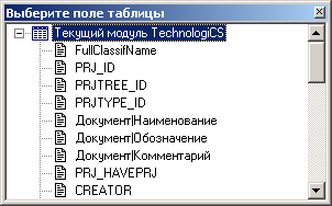 то при нажатии на клавишу «Выбрать поле набора данных в качестве значения» предлагается выбрать поле из списка имеющихся у данного окна TechnologiCS.
