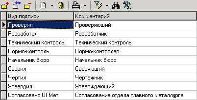 и предназначен для ведения списка подписей, которые будут присутствовать в документах.