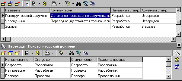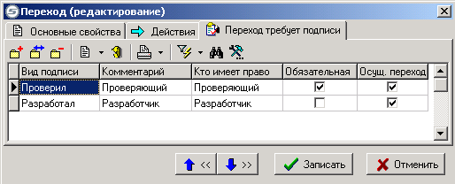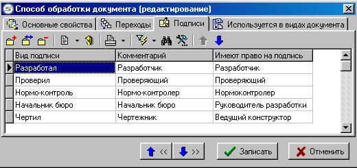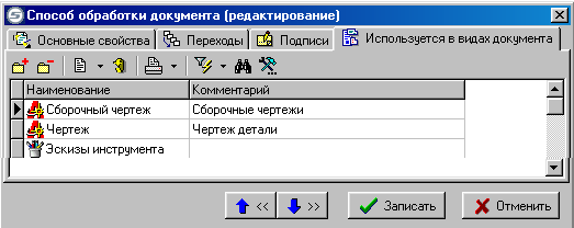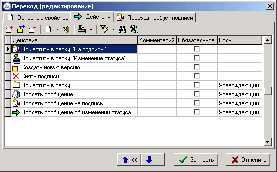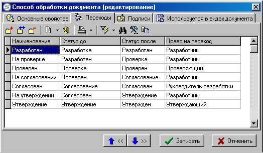 Управление списком переходов способа обработки документов производится при помощи следующих клавиш: