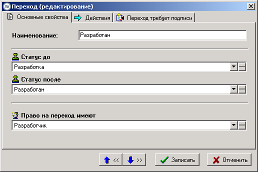 При добавлении или редактировании перехода выводится окно следующего вида: