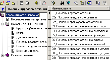 Окно справочника состоит из двух частей. В левой части находится дерево классификатора, в правой части справочника показан перечень шаблонов расчетов.