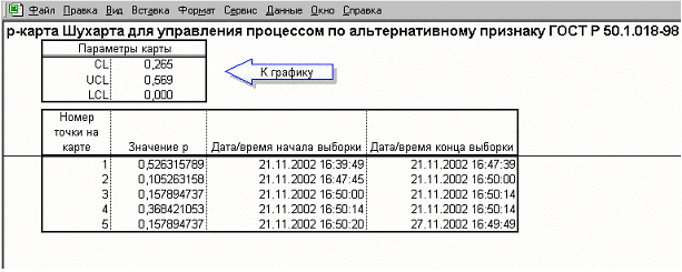 · Нажмите стрелку «К графику», чтобы перейти к окну контрольной карты (см. раздел 20.2.11.2).