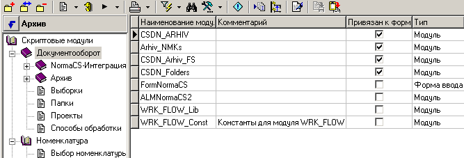 В процессе работы с системой TechnologiCS пользователь может самостоятельно наращивать ее функциональность с помощью визуальных форм и скриптовых модулей написанных на языке VBScript (см.15). Общий список таких модулей системы находится в разделе вспомогательных справочников