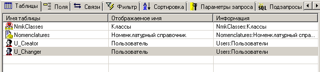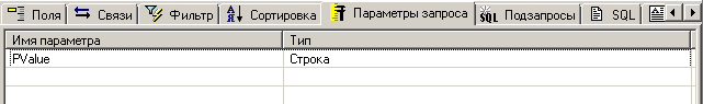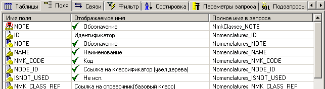 Закладка содержит список выбранных для запроса полей над